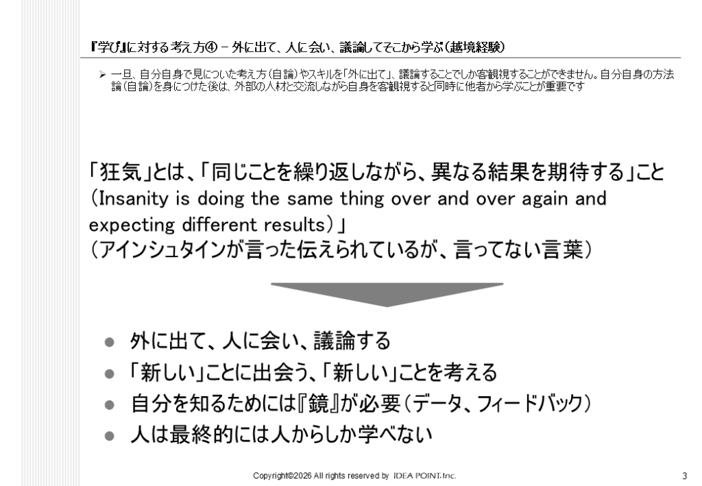 ポイント4:外に出て、人に会い、議論してそこから学ぶ(越境経験)