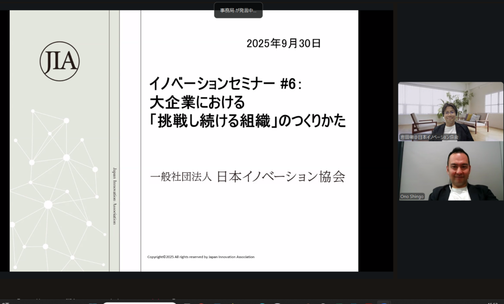 イベント実施のご報告:イノベーションセミナー #6: 大企業における「挑戦し続ける組織」のつくりかた